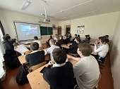 Офицер рассказал об истории и роли пограничной службы в обеспечении безопасности государства, современных задачах пограничников, а также выделил ключевые качества, необходимые для этой профессии: физическую подготовку, стрессоустойчивость, знание законодательства, навыки работы с техническими средствами контроля и командный дух. Он подробно остановился на порядке поступления в профильные вузы ФСБ России, вступительных испытаниях и льготах для курсантов.